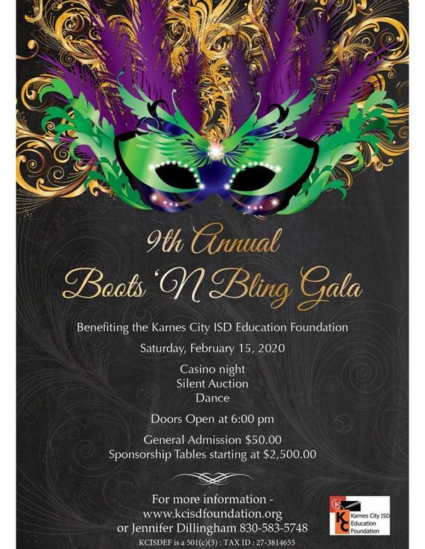 Your donation of $50 will entitle you to admission to the gala, including dinner by the Karnes City HS Culinary Arts program, drinks, casino night chips, and the dance.